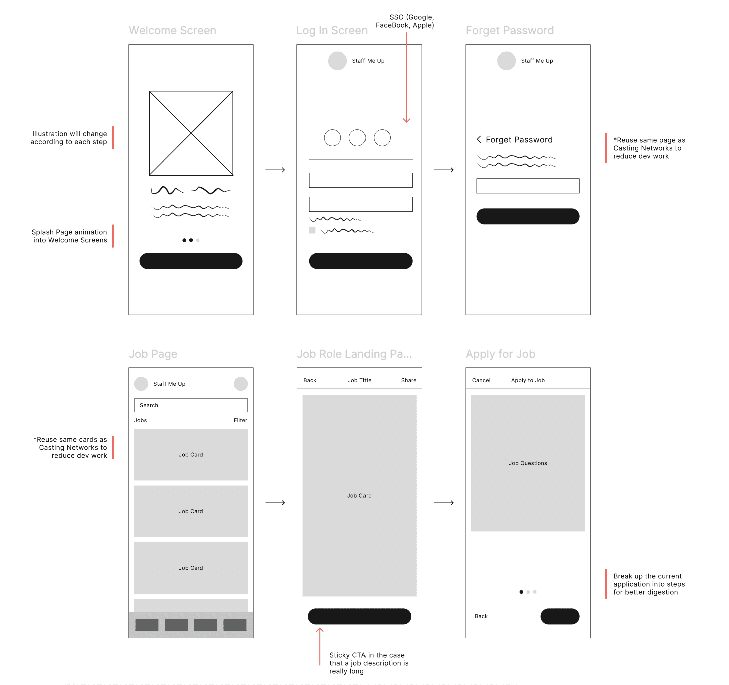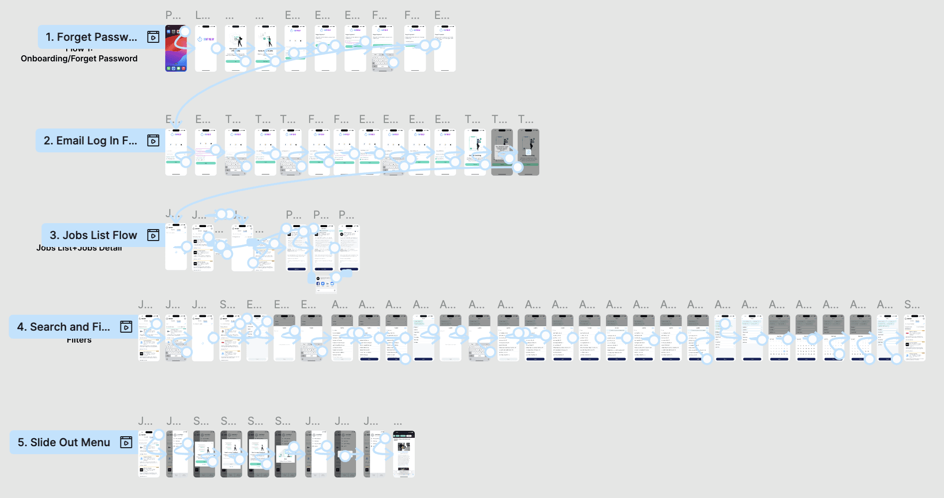 Since our core users are freelancers who primarily visit the website to search and apply for jobs, we identified their user flow as the most critical experience to bring into the mobile app. As a result, building and refining the job application functionality became the central focus of Phase 1. During this discovery phase, I started with sketches and low-fidelity screens. After reviewing with the product and engineering team, I was then able to move onto more high fidelity screens.
